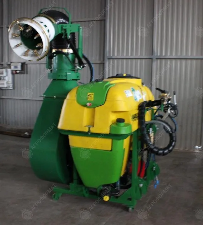Гидродинамическая система смешивания жидкостей в баке объёмом 600 л. Автоматическая установка направления распыления состава при круговом вращении распыляющей турбины (расход – 115-145 л в минуту). Автоподача воды через фильтрационный шланг длиной 6 м. В комплекте: 8 двухпозиционных форсунок из латуни, карданный вал, насос APS-145 с четырьмя диафрагмами. Общий вес устройства – 345 кг, размеры – 155/142/170 см.